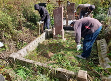 Затем мы вернулись на участок и приступили к работе на территории могилы: пропололи участок, а также демонтировали старые памятник и ограждение.